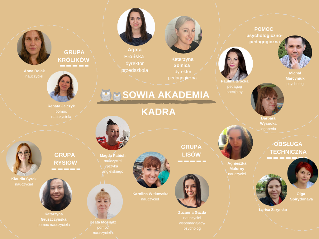 Nasze wieloletnie doświadczenie pracy z dziećmi przekuwamy na stworzenie miejsca, którego zawsze szukałyśmy dla swoich dzieci. Bliskie są nam idee głoszone przez Jespera Juula oraz Rodzicielstwo Bliskości. Każdy z naszych nauczycieli ukończył również szkolenie z zakresu pierwszej pomocy przedmedycznej dla dzieci. Nasi nauczyciele to pasjonaci a autentyczność w budowaniu relacji z dziećmi jest dla nas najważniejsza. Jesteśmy w ciągłym procesie tworzenia zespołu. Jeśli jesteś osobą, która chce być dla dzieci partnerem w odkrywaniu ich indywidualnego rozwoju i któremu nieobca jest komunikacja bez przemocy – skontaktuj się z nami!